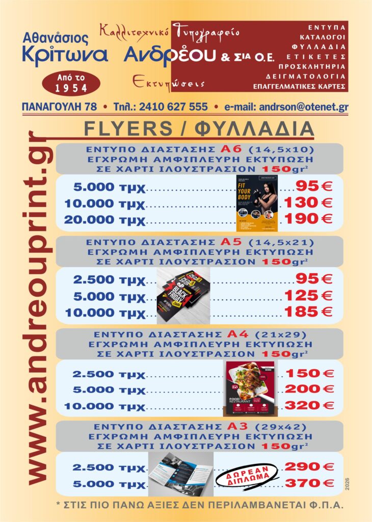 μονόφυλλα, πολυσέλιδα, σε χαρτιά κορυφαίας ποιότητας με ασυναγώνιστες τιμές